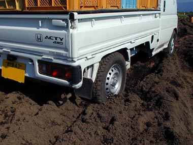 ポイントとなるのは、超低速ギアと、デフロック、オフロードタイヤ。この「農業3種の神器」を活用すると、ここまでのオフロード性能が得られます。