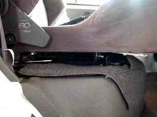 後、シートベルトの受ける方も収まりが悪いので、ひっくり返して付け直しました。殆ど通勤で使っているんですが、片道30キロの内半分が峠越えなので、効果バッチリです。デメリットとしては運転席下にオイルゲージがあるので、交換の旅に外さなきゃいけないことくらいで、今のところ取り立てて不便はありません。